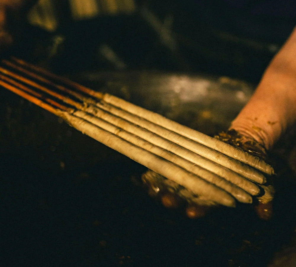 Each candle is carefully crafted by hand, starting with a wick made from washi paper and reed, then layered with wax from the haze tree. This slow, thoughtful process gives the candles their signature gentle flame and soft, flicker-free glow. Every candle reflects patience, care, and a deep respect for nature and tradition.